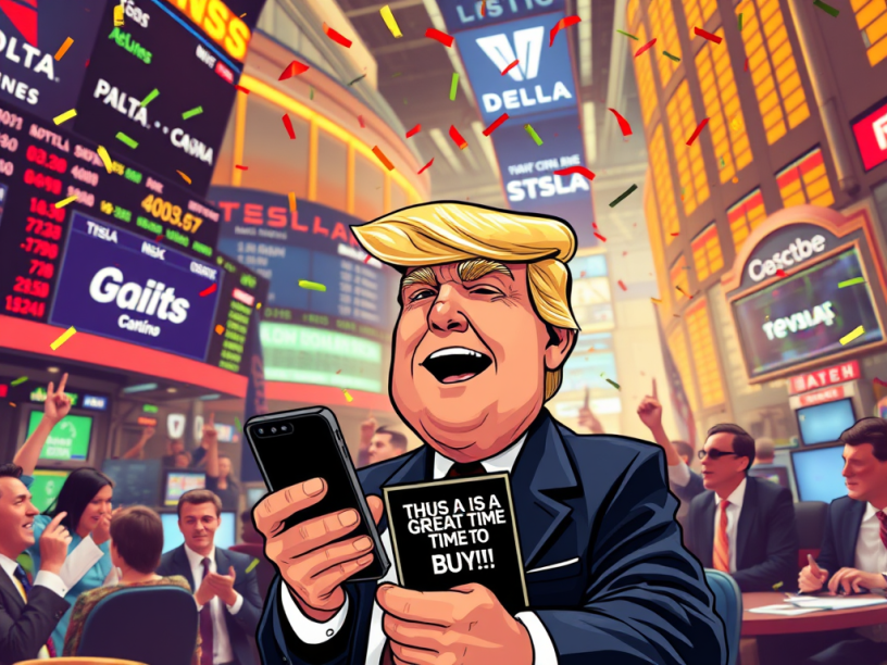 The result? A $4 trillion market-value bonanza in ten minutes flat. Delta Airlines soared 23%. Tesla, despite Elon Musk’s half-hearted grumbling about tariffs last week, shot up like it was fueled by SpaceX rockets. Traders were high-fiving each other so hard they needed ice packs by noon. “Historic,” the talking heads on CNBC gushed, like they’d just witnessed Moses parting the Red Sea instead of a guy in a too-long tie typing all-caps nonsense on his phone.