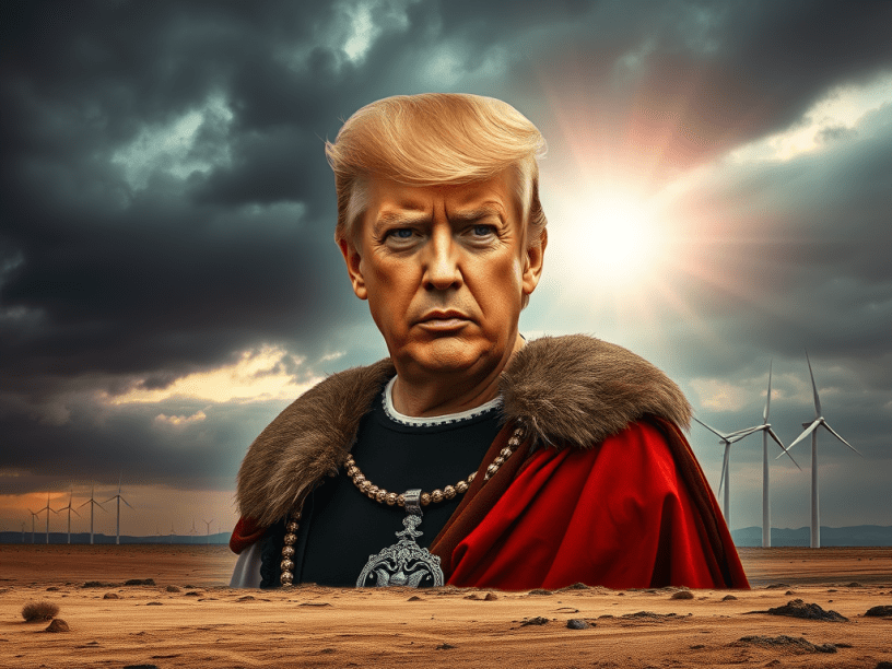 Trump hates wind turbines the way a medieval peasant hated comets: irrationally, obsessively, with a kind of slobbering fear that says more about him than about the giant pinwheels themselves. He’s been ranting about them for years—how they kill birds, cause cancer, make your lights flicker, give children autism, and probably eat your grandma’s dog. In reality, turbines just spin quietly and make electricity. But in Trump’s skull, wind power is a personal affront, a rival brand, a competitor in the marketplace of attention.